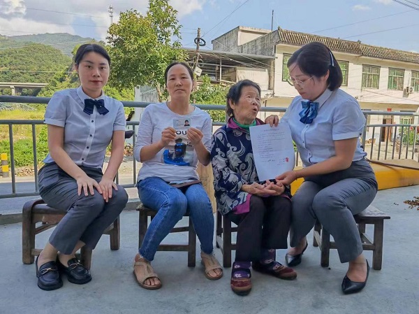 该行工作人员在了解这一情况之后,第一时间为胡女士选择上门服务 ,两名工作人员立即携带“移动背夹”上门为胡女士办理业务。